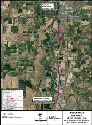 SUPPLEMENTARY INFORMATION: The City of Fort Lupton proposes to construct a force main and lift station (Project) to deliver wastewater flows from the City’s current wastewater treatment plant (WWTP) to Metro Water Recovery’s Northern Treatment Plant located at 51 Baseline Road in Brighton, Colorado. The Project will construct a 6.5 mile long, 20-inch diameter pipeline located northeast of Denver in Fort Lupton, Colorado. A lift station will be retrofitted from the existing structures in the current WWTP to deliver the required flows to Metro. Completion of the force main and lift station would allow all wastewater flows to be transferred to Metro for treatment. The Project is situated adjacent to U.S. Highway (US) 85, beginning north of HW 52 and ending north of East 168th avenue in Weld County, Colorado (Project Area) (Attachment A).