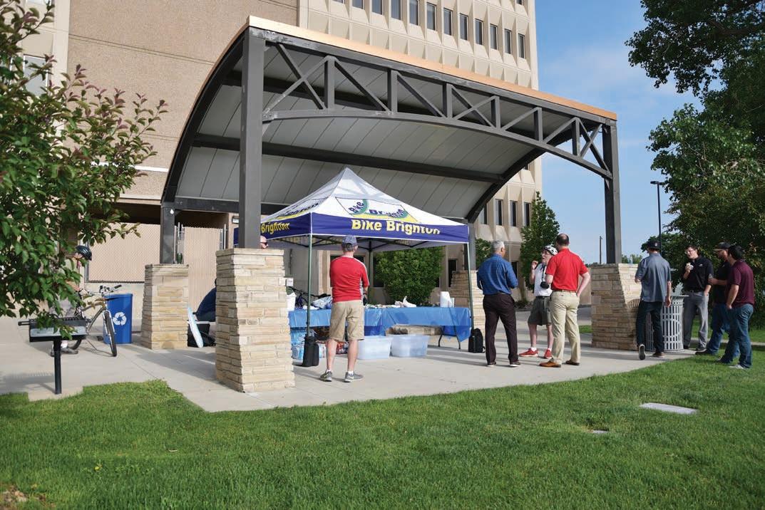 Cory Van Duyne stopped by Brighton’s Bike to Work day station on his e-bike on his way to work June 28, part of a statewide e ort to encourage people to leave their cars at home. Van Duyne said rides to work all the time, and seeing more people out was fun. See more photos on page 6. PHOTO BY BELEN WARD