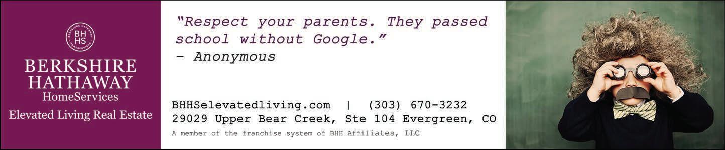 The mountain area’s newspaper since 1958 WEEKOF OCTOBER 20, 2022 NOWSERVING EVERGREEN, CONIFER, BAILEYAND PINE 75 CENTS COURIER C A N Y O N www.canyoncourier.com est. 1958 SUBSCRIBE: ALL LOCAL, ALL THE TIME. $40 PER YEAR. DISCOUNTS AVAILABLE PLEASE RECYCLE THIS PAPER FOLLOW US ON FACEBOOK INSIDE THIS ISSUE EFR briefs 4 Mt Evans 6 Opinion 8 Life 12 Sheri ’s Calls 15 Sports 16 Bike track 38 Electives 42 VOLUME 63 ISSUE 50
