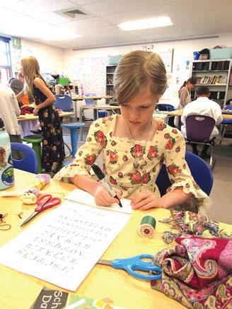 In teacher Megan Morganthaler’s room, students created cornhusk dolls, adding fabric and other props before trying their hands at printing letters in a similar style to what the colonists used.