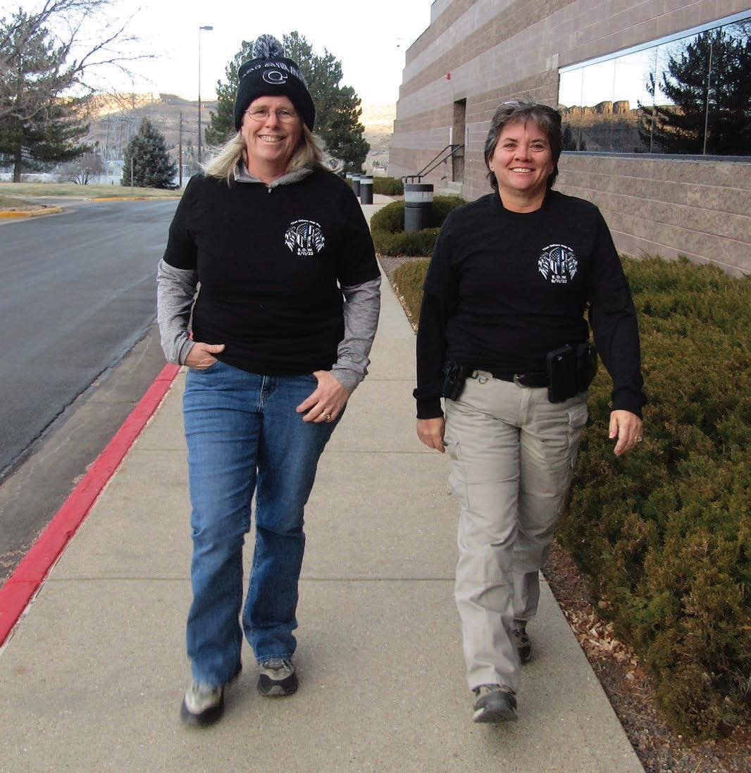 Wendy Fehringer, left, and Dee Patterson, investigators with the Je co Sheri ’s O ce, walk along a path near their o ce as part of their training for the COPSWalk Southwest. The walk benefits the C.O.P.S. Foundation.
