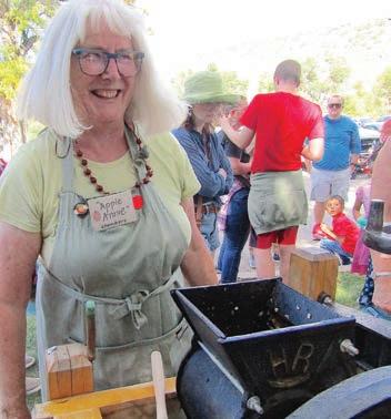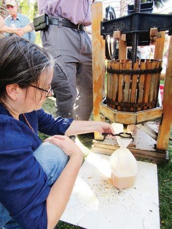 Apple Annie, aka Jamee Chambers, has been using her apple press at Ciderfest since the rst event 34 years ago. Chambers and other volunteers put apples into the press and operated a wheel to grind them into small pieces that were pressed