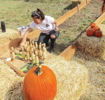 Annie Cooley and Heather Aberg, the executive director and former executive director of Resilience1220, respectively, took turns setting up the 20 pins for pumpkin bowling. e bowling “lane” was set up on a hill, so children could roll small pumpkins down the hill toward the pins.