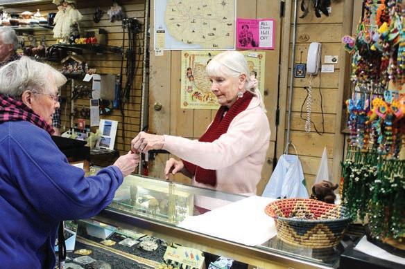 Bu alo Bill Museum gift shop employee Carol Jesperson, right, helps a customer Dec. 30. The Pahaska Tepee building, where the gift shop and cafe are, was built in 1921 and has been run by the same family since 1956.
