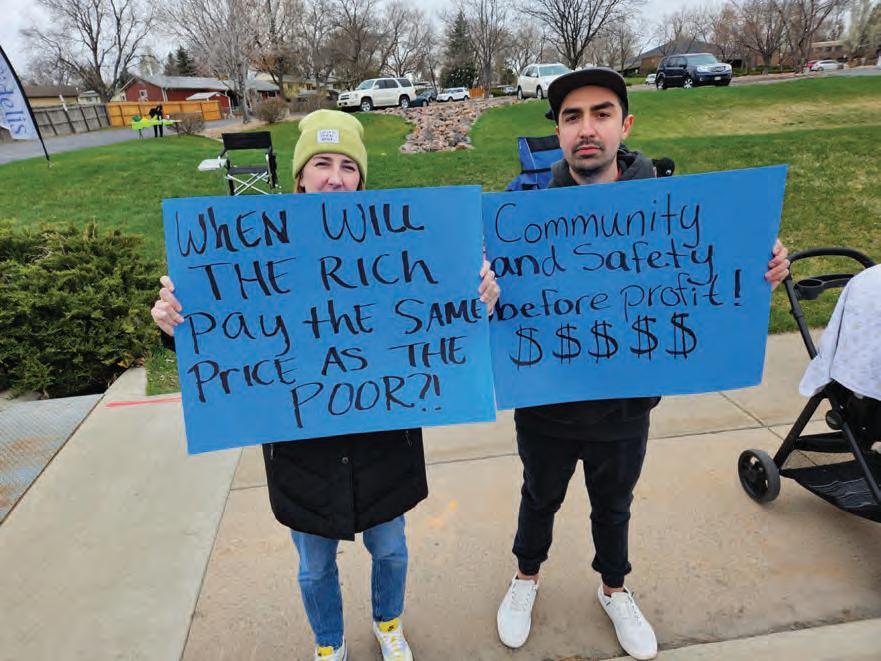Randi Bazylak (left) and Zach Bazylak protest in Northglenn April 6 over transition homes nearby PHOTO BY MONTE WHALEY