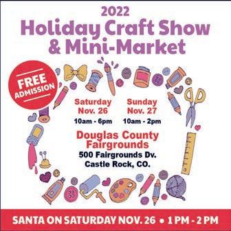 November 17, 2022 40 The News-Press Come shop for unique gifts and special items during the annual Colorado Community Media Holiday Craft Show and Mini-Market; With more than 100 exhibitors filling the Douglas County Fairgrounds, this is the best place to find that special, personal gift for friends and family. The show will feature handmade crafts in all areas from metal and leather, to flowers, baskets, ceramics, and so much more. Vendor applications being accepted now! Holiday Craft Show & Mini-Market FREE ADMISSION!! 4th Annual Contact Event Producer Thelma Grimes at tgrimes@coloradocommunitymedia.com All applications must be approved to participate Visit Santa at the show on NovemberSaturday, 26 1pm-4pm Saturday November 26 10am - 6pm Sunday November 27 10am - 2pm Douglas County Fairgrounds 500 Fairgrounds Dv. Castle Rock, CO. Hourly raffles will be held! Sign up for your chance to win cash to spend at the show! Bosley’s Goods bosleysgoods.com Geranium Place Pottery geraniumplace.com Simply You Boutique SimplyYouShop.com Sweetwater Trading Company sweetwatertradingcompany.com Bailey Constas baileyconstas.com The Tickety Boo Shop ticketybooshop56.com Missy Moo’s Custom Creations missymooscc.com Turquoise Sisters Boutique turquoisesistersboutique.com