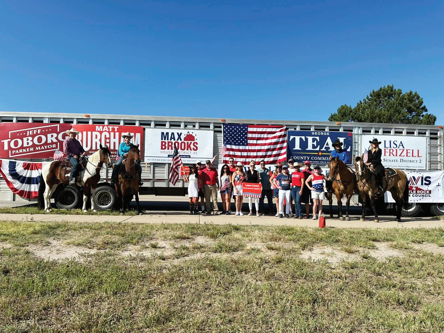 U.S. Rep. Lauren Boebert walks with the Douglas County GOP and local candidates at the Douglas County Fair Parade. Boebert and Douglas County Republicans are trying to unify the party amid divisions at the state level. COURTESY LAUREN BOEBERT FOR CONGRESS