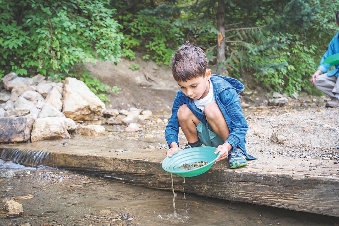 Phoenix Gold Mine Tours and Panning o ers year-round tours of the underground mine and lessons on how to pan for gold. In the spring, participants can pan for gold in the Rocky Mountain Creek on site and keep what they nd; it’s naturally stocked with gold and minerals, according to owner David Mosch.