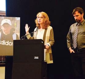 Alexander “Alex” Mackiewicz’s mother, Victoria Cegielski, and stepfather, Owen Cegielski, hold hands after speaking about the loss of their son in a press conference on Thursday, March 21 at the Douglas County Sheri ’s O ce Substation in Highlands Ranch.
