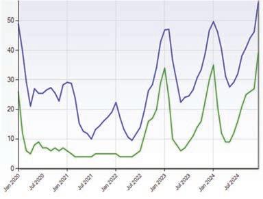 Now that 2024 has ended, we can see quite clearly that the seller’s market created during the Covid pandemic is now a thing of the past. December was a particularly slow month in a year that saw a great increase in the number of active listings, but little or no corresponding increase in sales, plus some other negative metrics, as shown in the charts at right.