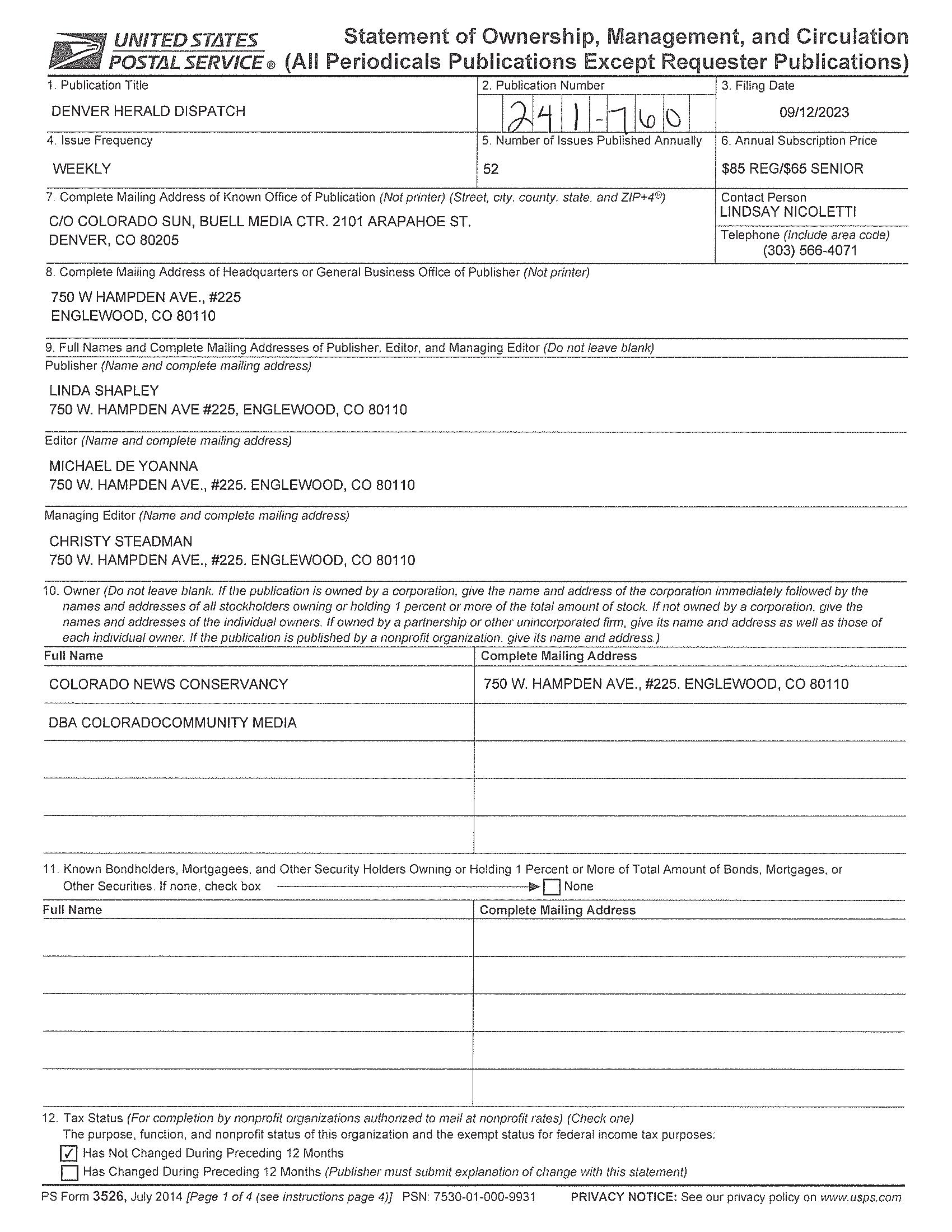 is story is from e Colorado Sun, a journalistowned news outlet based in Denver and covering the state. For more, and to support e Colorado Sun, visit coloradosun.com. e Colorado Sun is a partner in the Colorado News Conservancy, owner of Colorado Community Media.