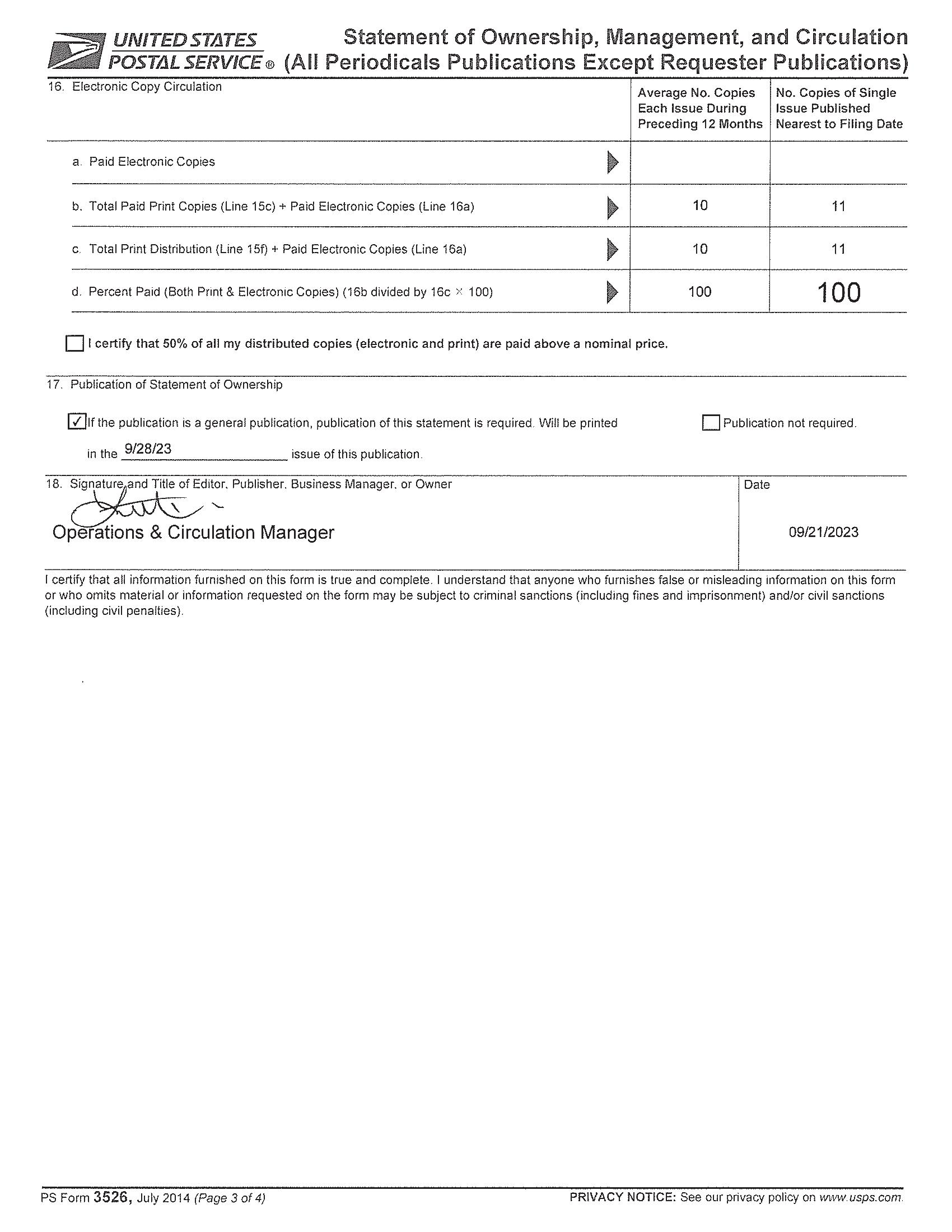 All persons having claims against the above named estate are required to present them to the personal representative or to the Denver Probate Court of the City and County of Denver, Colorado on or before January 16, 2024, or the claims may be forever barred.