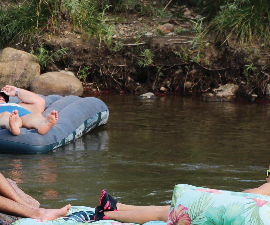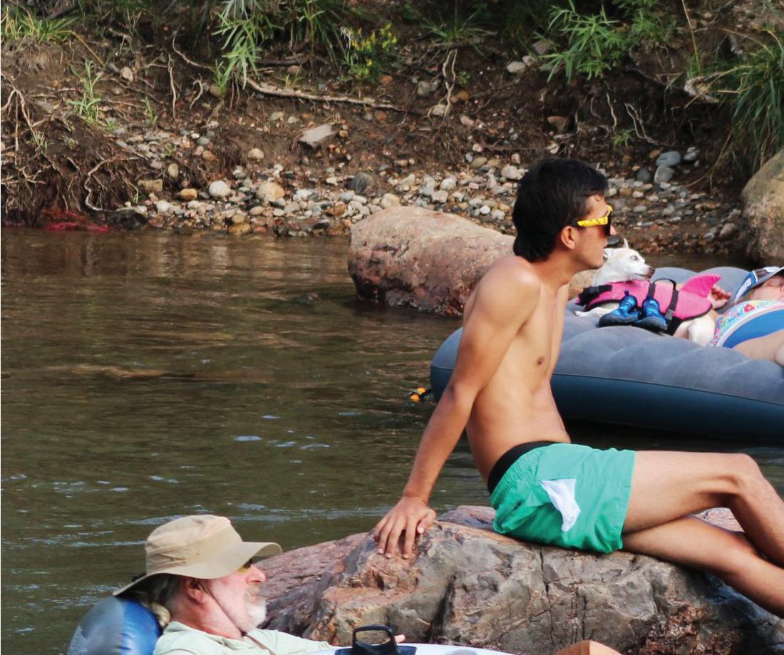 Like most rafting companies, Liquid Descent provides wetsuits, splash jackets, personal oating devices and helmets. You can rent boots for $5 but can also bring any footwear with an