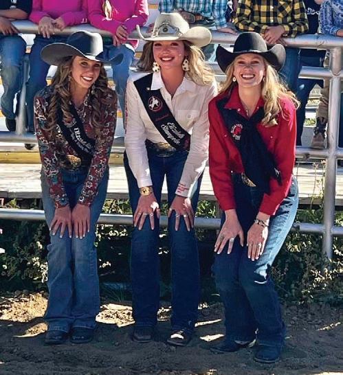 Elizabeth Stampede Rodeo Royalty attend the Community Rodeo: from left, 2023 Attendant in Waiting Isabelle Piche, 2022 Attendant Hannah Thomas and 2023 Queen in Waiting Kyra Doud.