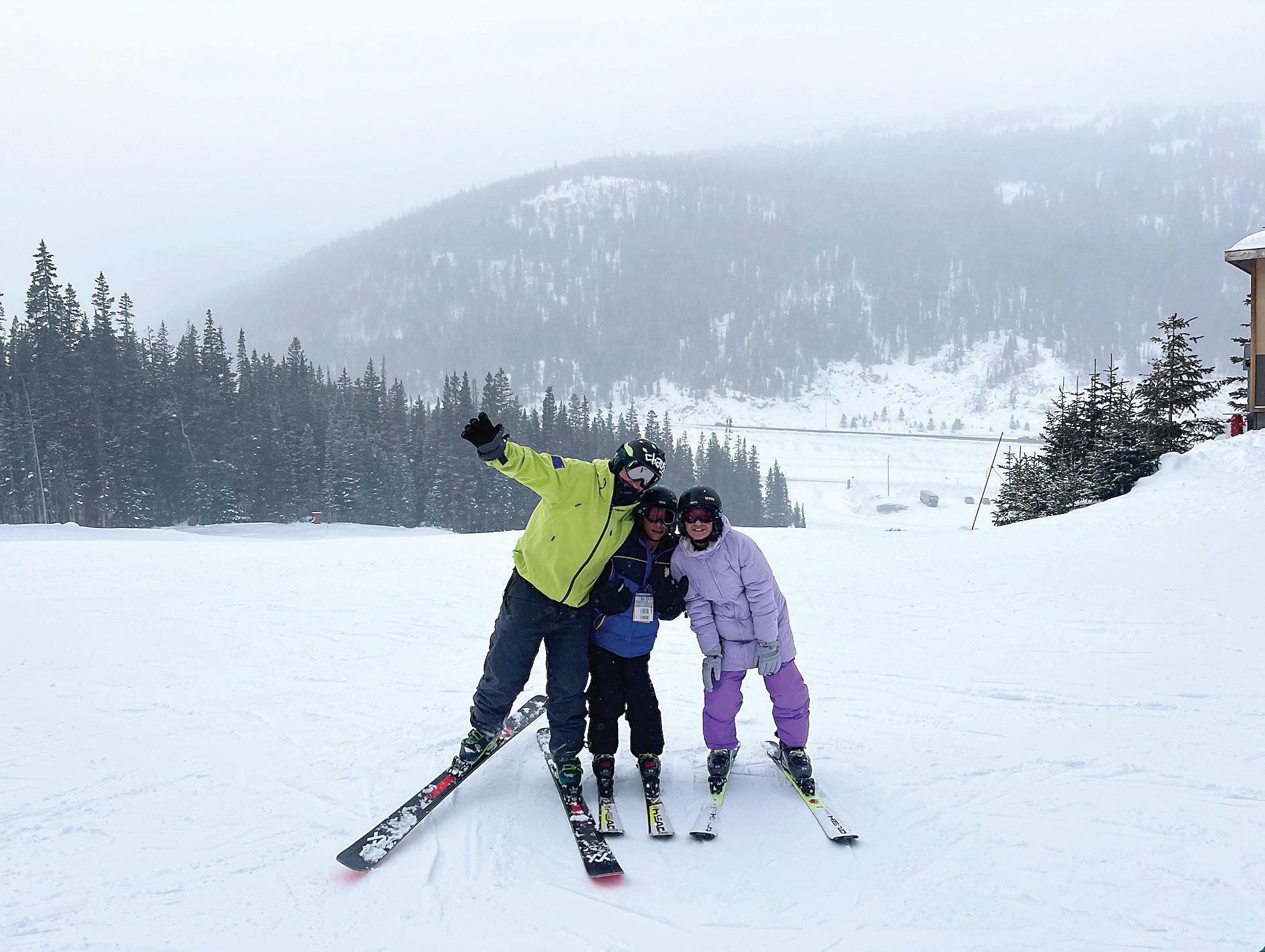 Two students pose with their ski instructor and teacher, Peter Zola. PHOTOS