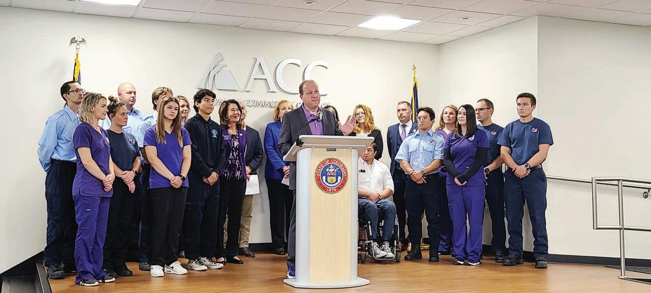 During the press conference, Polis was joined by Lt. Gov. Dianne Primavera, administrators from the Colorado Community College System (CCCS), students who will benefit from the program and community members from Arapahoe Community College (ACC).