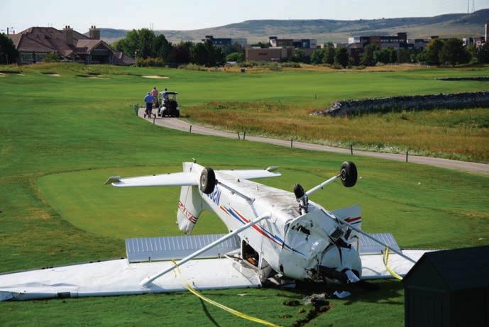 A small plane crashed and was found upside down at Meridian Golf Club near Centennial Airport on Sept. 11. e aircraft’s two occupants had gotten out of the plane by themselves and were able to walk away, according to the Douglas County Sheri ’s O ce.