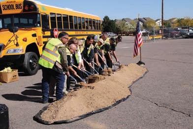 A new school bus storage, maintenance and service terminal located in the center of Brighton should help save money, District 27J o cials said at an October 7 groundbreaking. e school district ceremonially broke ground on a transportation facility located just north of the Educational Services Center at 18551 E. 160th Ave. It’s a supplement to the district’s current transportation facility, located just southeast of Prairie View High School on Potomac Street.