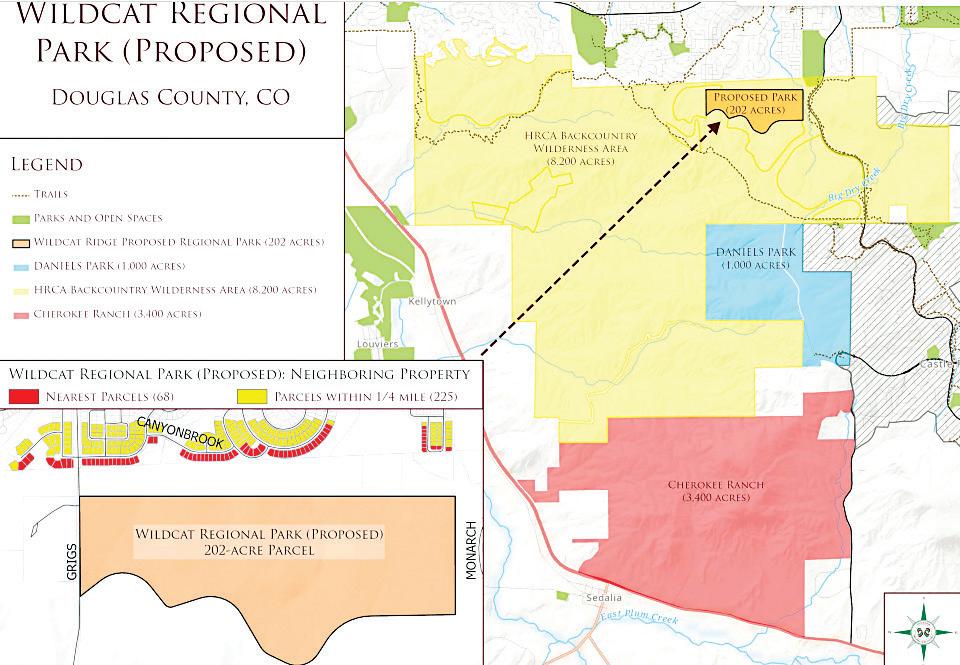 possible impacts of a park to wildlife. e proposal is called Wildcat Regional Park. e 202-acre piece of land — between Grigs Road and Monarch Boulevard, south of Rocky Heights Middle School — was given to the county as part of an agreement with Mission Viejo Company, the initial developer of Highlands Ranch.