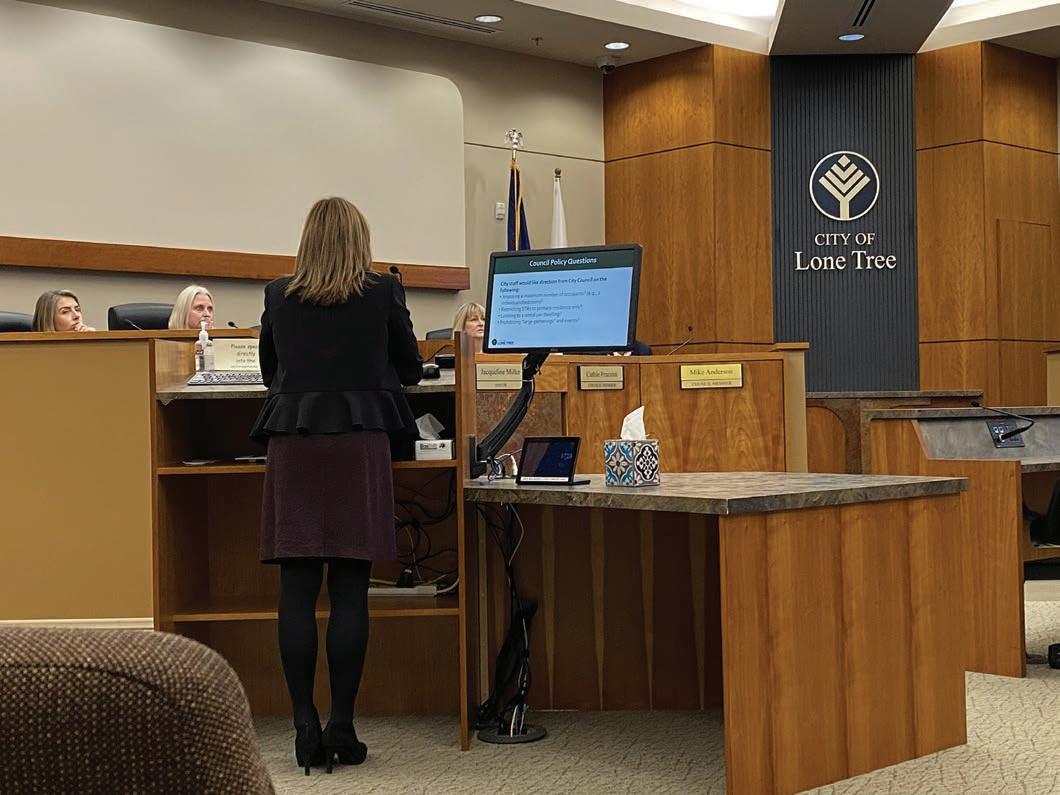 Lone Tree City Attorney Linda Michow presenting to Lone Tree City Council on Nov. 1.