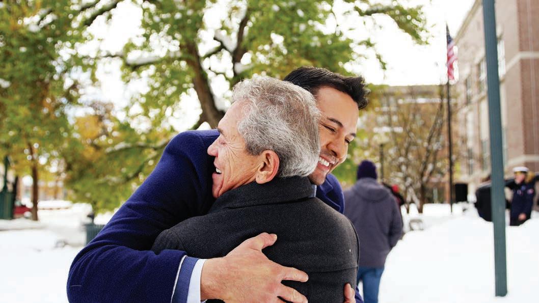Douglas County Commissioner Abe Laydon hugs a man amid a veterans tribute event Nov. 9 at the Wilcox county o ces building.