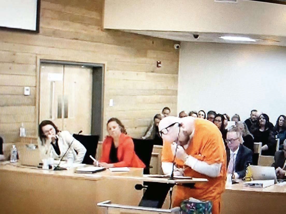 Former Clear Creek County deputy Andrew Buen addresses Christian Glass’ family in advance of his sentencing in district court on April 14, 2025. Buen was convicted in February in the shooting death of Christian Glass.