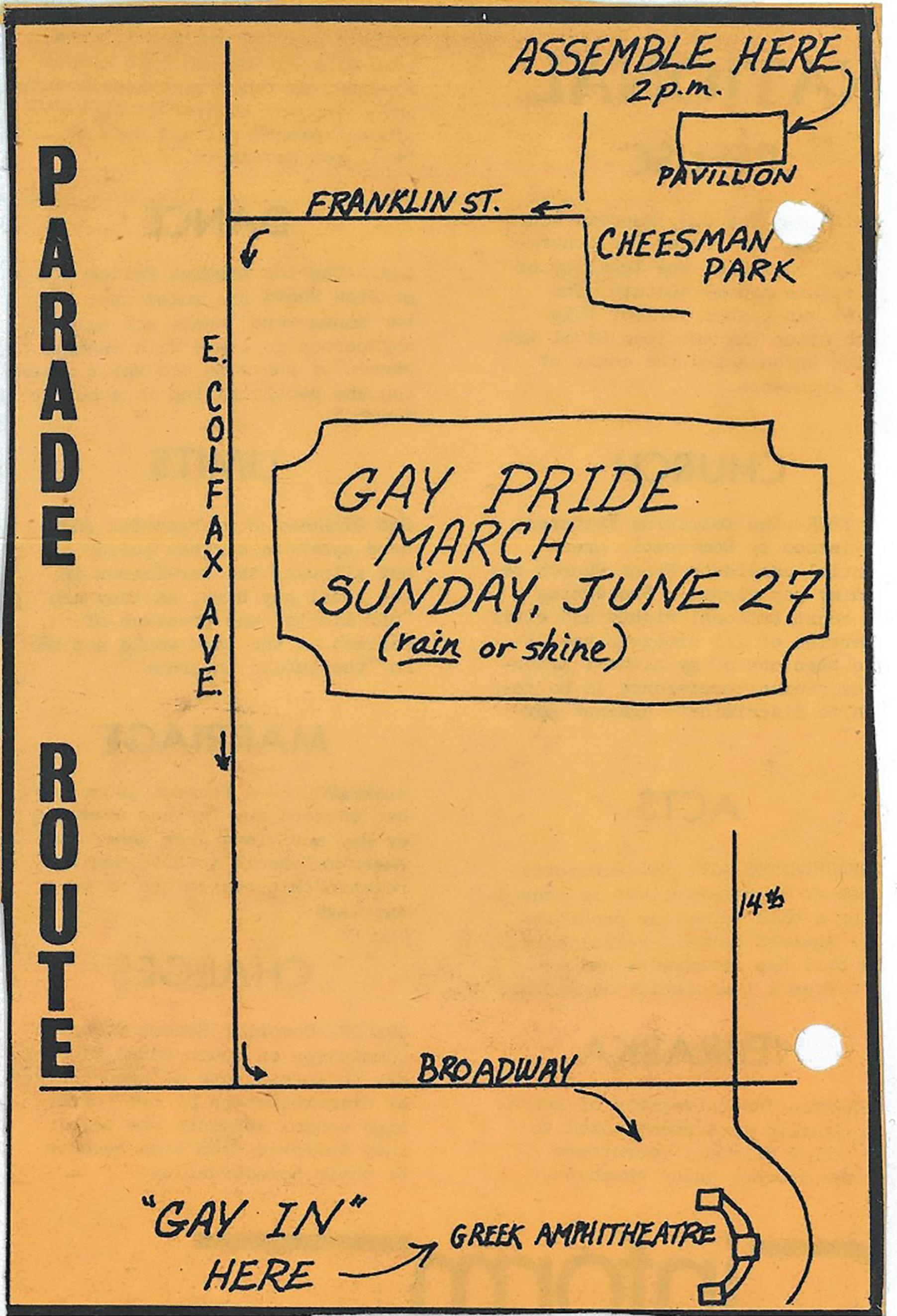 A map of the first Denver Pride Parade in 1976.