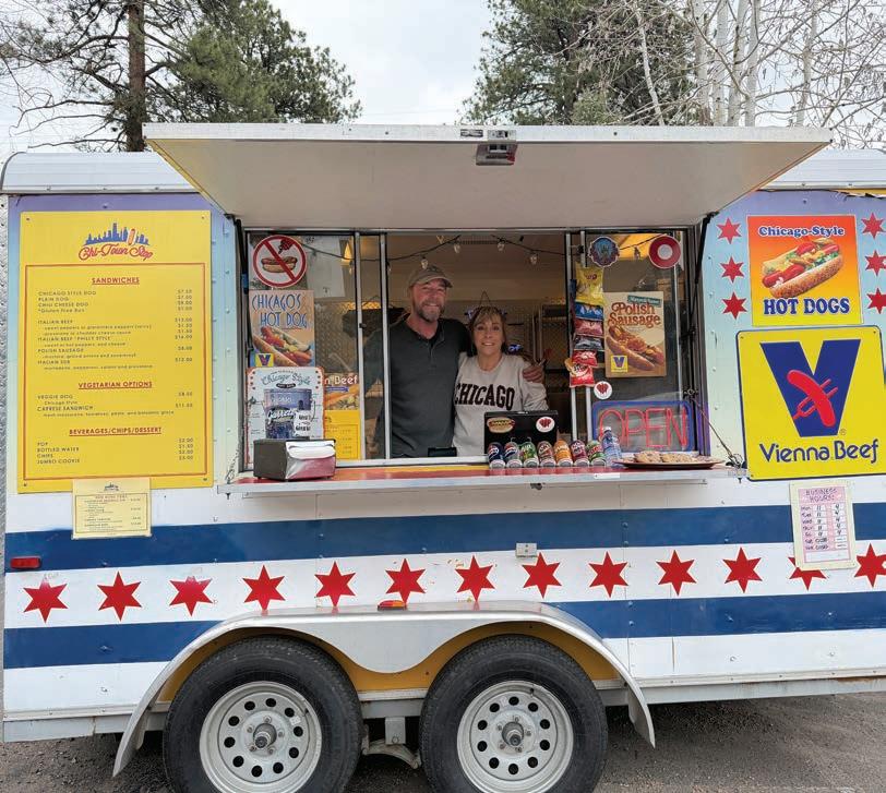 Chi-Town Stop is another well-known local food truck, this one serving up authentic Chicago-style hot dogs. Owner Laurie Pfister spent years in food service working in sports arena suites, but when COVID shifted the landscape 5 years ago, she struck out on her own. She built out the truck herself, getting her start at Anderson’s Market. Committed to authenticity, she serves only Vienna Beef hot dogs—and, in a fun twist, got to know the owner of Vienna Beef, who once had a home in Evergreen. Why Chicago hot dogs? She says she’s a food snob, and she loves the association and childhood memories that Midwesterners have for Chicago hot dogs and the classic Italian Beef sandwiches. And if you are not a beef lover, her caprese/pesto sandwich is killer! She offers Italian subs too. Laurie’s newer location on Meadow Drive is ideal she said, more foot traffic and a nice space for tables and umbrellas. Challenges for Laurie? The cost of food is a big one, the beef hot dogs have gone up quite a bit in price. Laurie sallies forth, giving off a wonderful energy, her vitality and friendliness make everyone feel welcome and downright cheery. This is how she