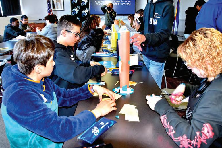 “Don’t get me wrong, training astronauts for space was ful lling, but being able to prepare the next generation is a next level of ful llment,” Lucas said. at’s what she and her team were aiming for April 26 and 27 at the Colorado Space Port near Watkins. e space port hosted the Go for Launch Higher Orbits event, a special STEM program, for 35 Denver-area middle and high school students.
