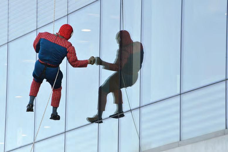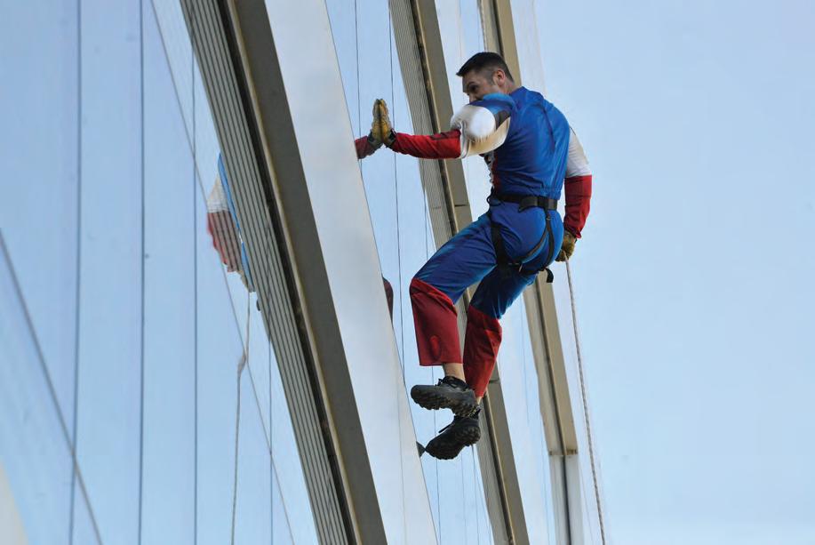 division chief of support services at the Douglas County Sheri ’s O ce, saw other agencies repelling down the sides of hospitals on social media. Davis immediately presented the idea to his community resource team and soon after, members of the Douglas County Regional SWAT team were getting tted for their superhero suits.
