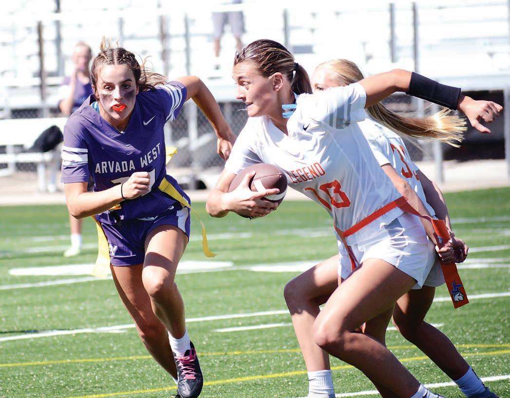 After two pilot seasons of girls ag football with Chat eld and Arvada West — both Je co Public School teams — capturing state titles, Saturday marked the opening day for the rst season as a Colorado High School Activities Association-sanctioned sport for the highly popular and growing sport of girls ag football.
