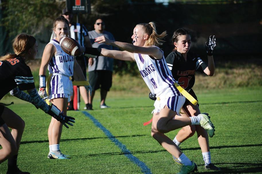 “We have so many playmakers on our team. I love watching them play together,” Abell said of four di erent A-West players nding the end zone against Columbine. “ ey play for each other and they play so hard.” Schellpeper’s interception returned for a touchdown induced a running clock with the 30-point mercy rule midway through the third quarter. Junior Santana Pena added a short touchdown run in the fourth quarter to make the score 39-0.