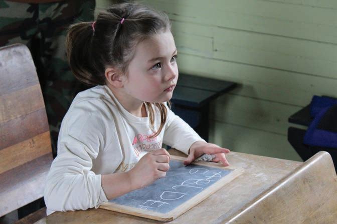 A season of learning Ryker O’Brien, 5, practices the alphabet on a small chalkboard in the Guy Hill Schoolhouse during the Oct. 2 Autumn Fest.
