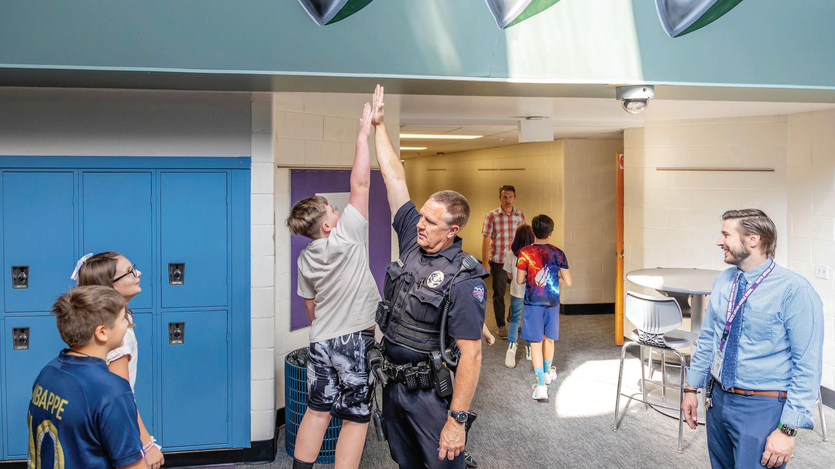Arvada Police Department O cer Lewis high fives a Je erson County student.