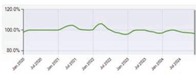 The ratio of closed price to listing price is another key indicator of a seller’s market. It peaked at 106.1% in April 2022, but has been as low as 92.0% since then.