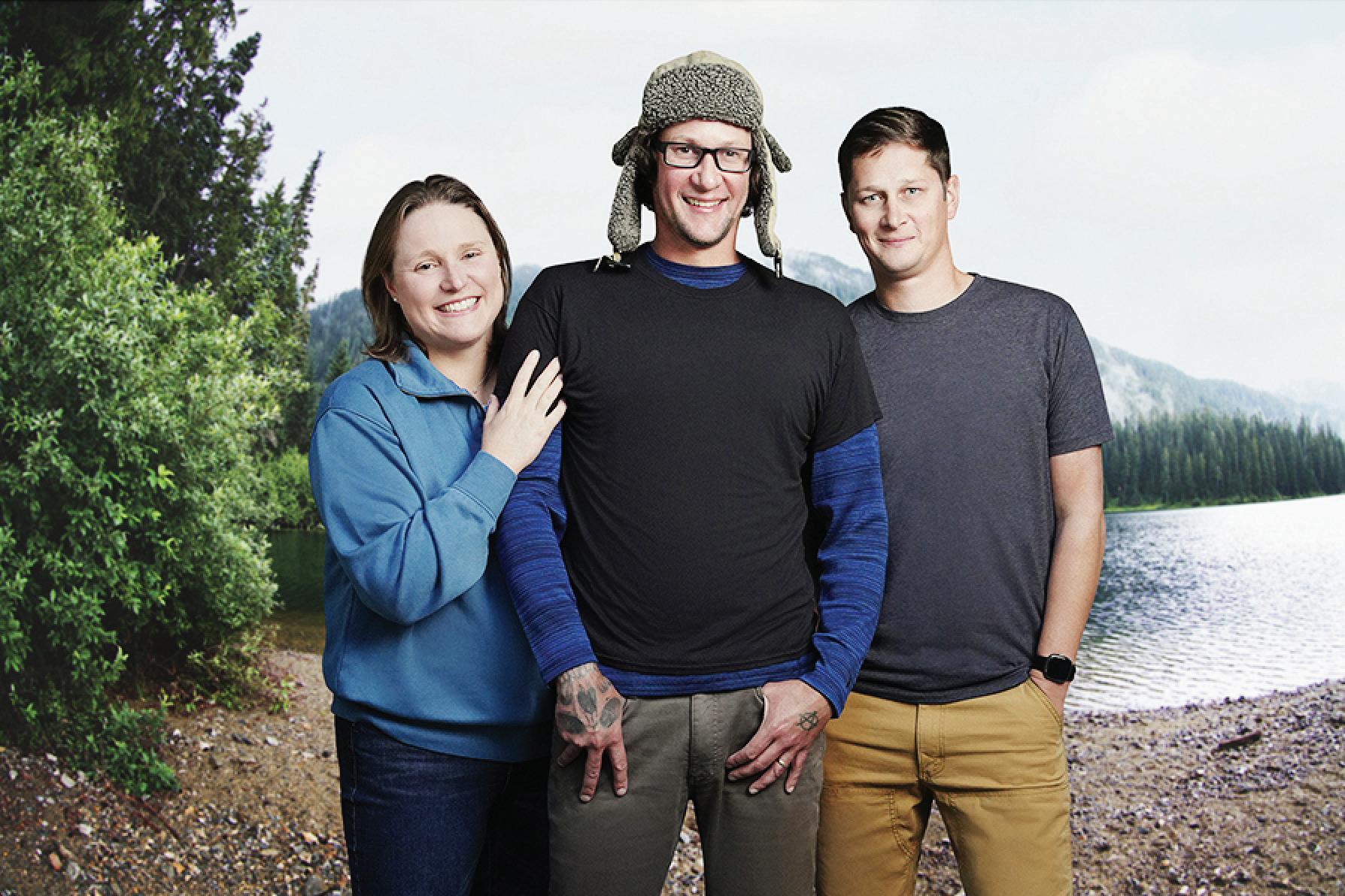 Conifer couple Sarah Thomas, left, and Ryan Willis, center, along with Ryan’s brother, Sean Willis, are featured on a new survival TV show called “Extracted” on Hulu.