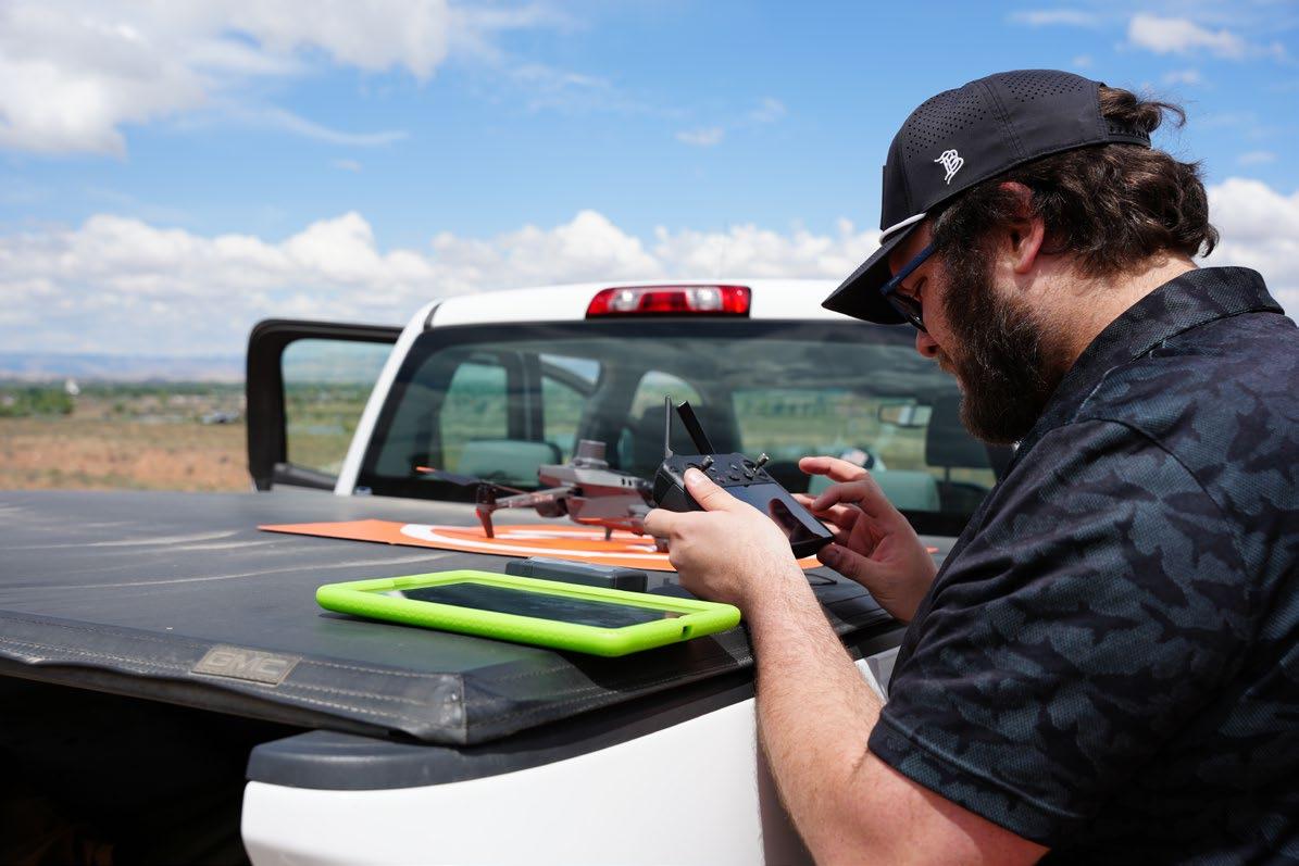improving operations through technology,” said GIS Analyst Ryan Roesch, one of two Grand Valley Power drone pilots. As a business, the cooperative must comply with FAA regulations for unmanned aviation systems, including having a drone-certified pilot. To fly, pilots must pass an exam demonstrating their knowledge of air space, radio etiquette, weather, restrictions, and more. Line Patrolman Mason is training to earn the certificate.