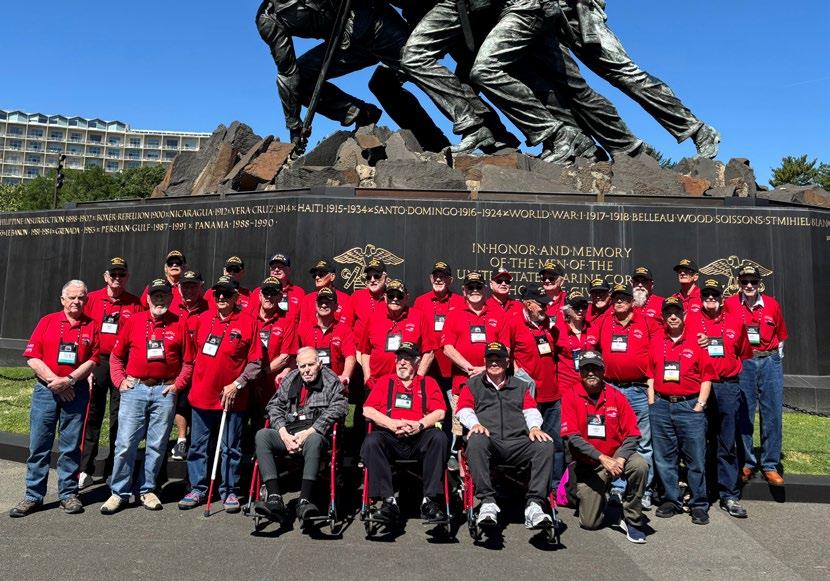 U.S. Navy and Navy Reserves Veteran Areta Laird, Eads, takes a photo with the magazine at the World War II memorial during her Honor Flight trip.