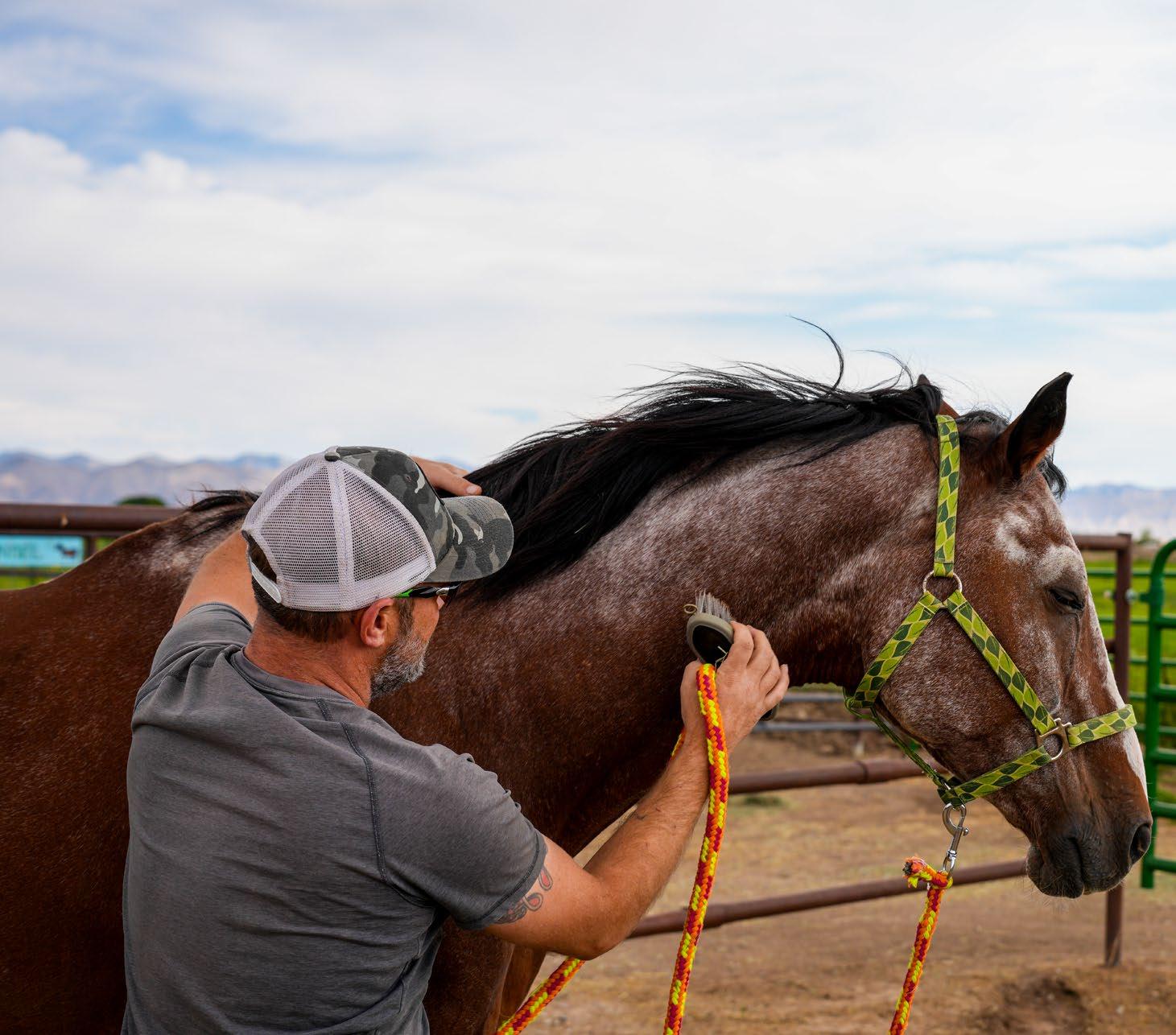 As for Cage, now 41, he volunteers weekly at Harmony as a force for good. After serving his country in the Air Force for six years, he continues his commitment to service by helping other Veterans through the equine therapy program that helped him. “Since I’ve been coming to Harmony, I haven’t had any big mental health problems. Ultimately, Harmony Acres saved my life.”