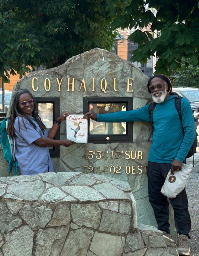 Phil and Brenda Henderson, Empire Electric Association members, take a quick break from fishing and hiking adventures with friends in Coyhaique, Chile, to snap a photo with their copy of CCL.
