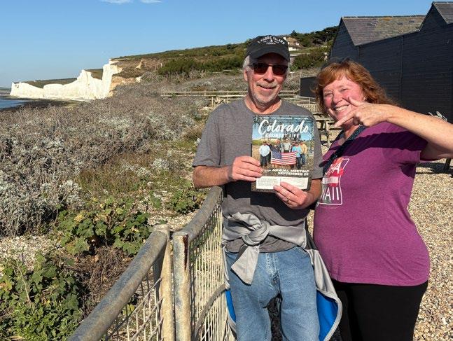 San Isabel Electric members Scott and Alison Jones bring CCL to visit Beachy Head chalk cliffs near Eastbourne, England.