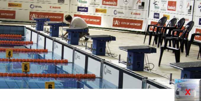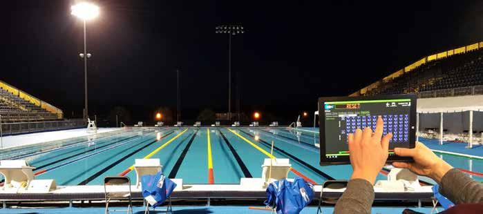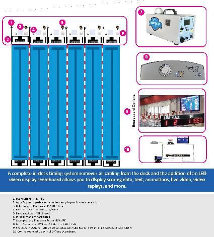 • Wall or floor plate connectivity for timer, start system, deck clocks, portable scoreboards, and bulkhead
