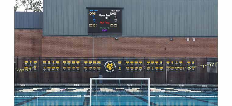 Water polo, 1 line exclusion; same size as 10-lane swimming with space for signage above an below the water polo data