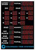 Diving scoreboards integrate wirelessly with System 6 and wireless adapter or the Gen7 Diving Software computer with wireless adapter or wired judging system.