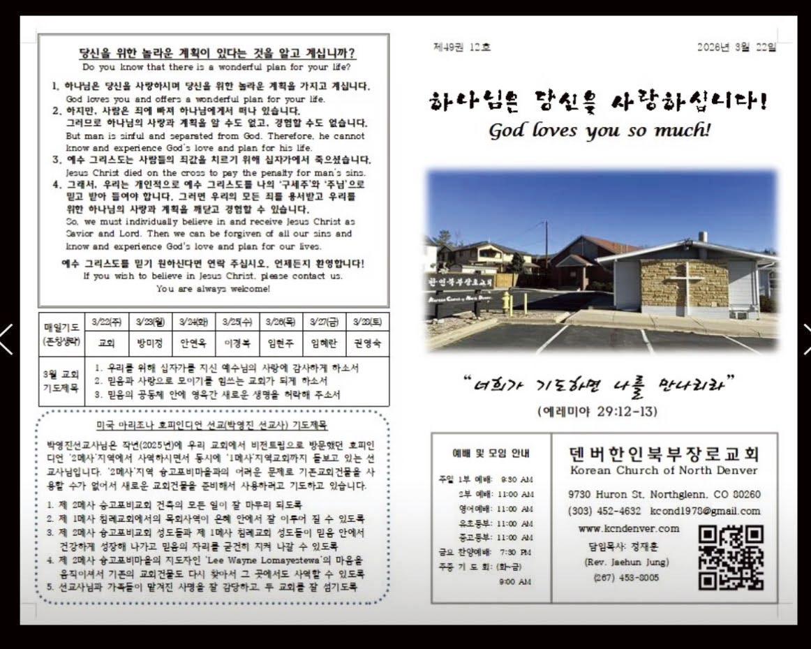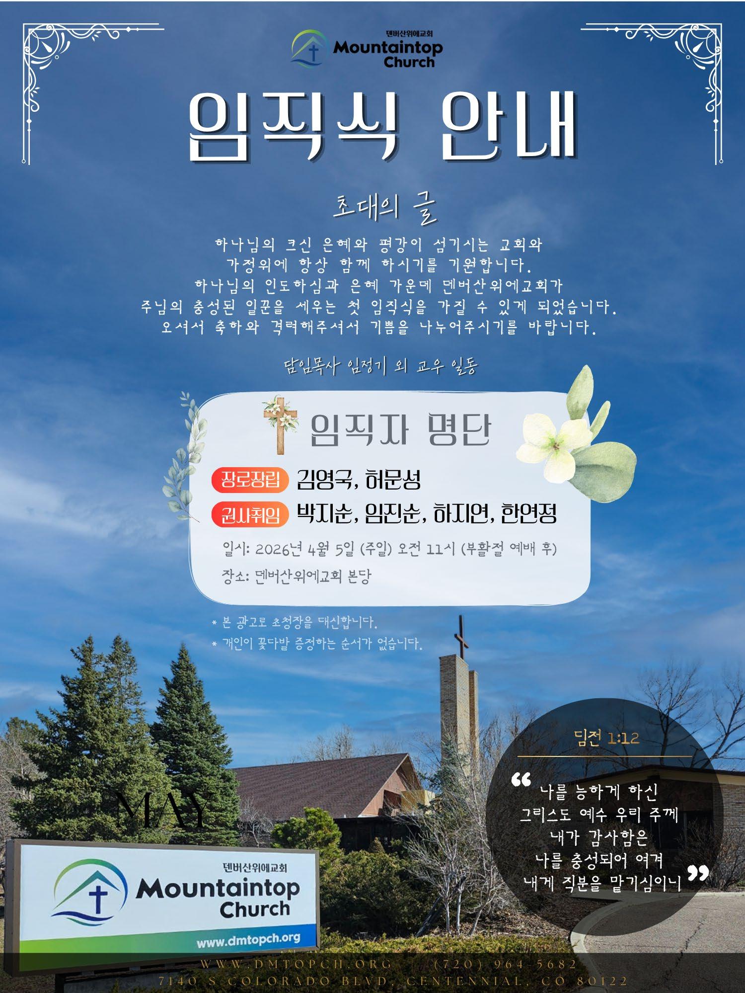 덴버한인북부장로교회 임직식 안내 한미감리교회