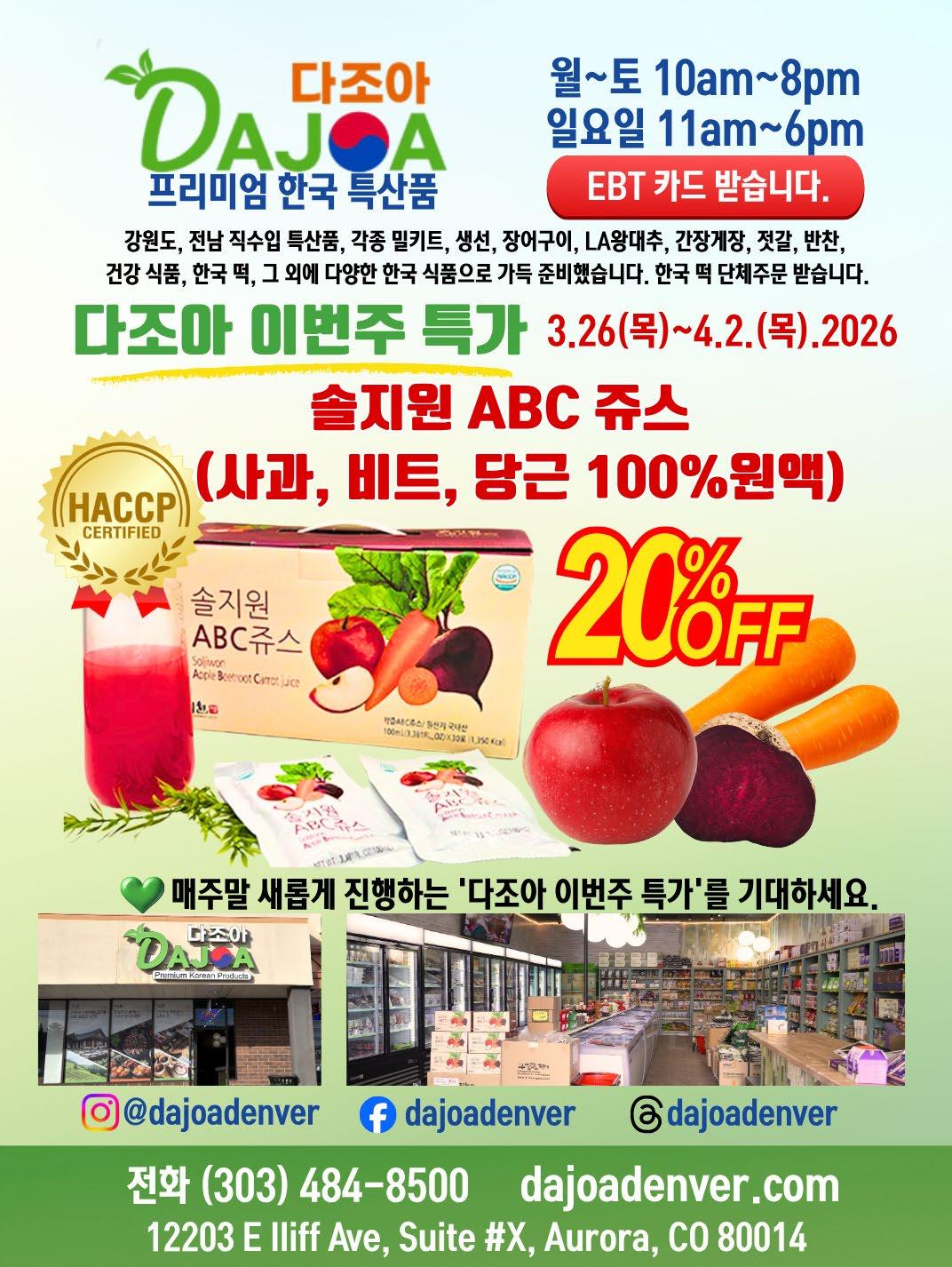 매주 월,수,금 오전 10시-오후 4시 (303) 506-0228 <032025>