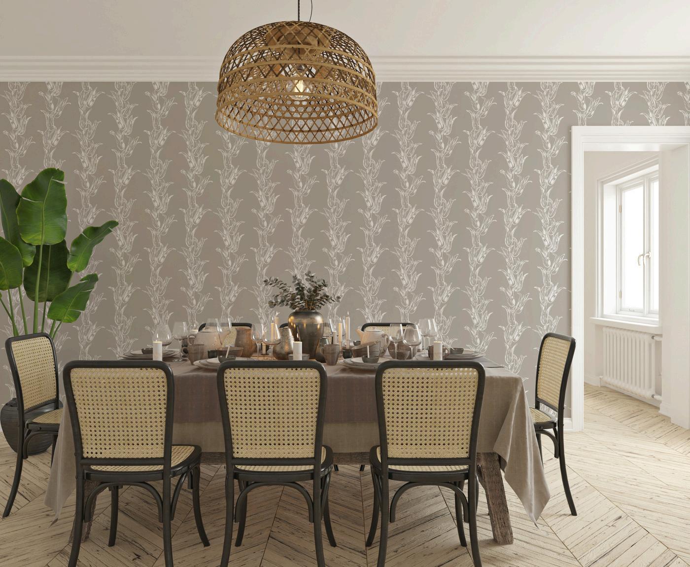 Gently swaying strings of kelp come to life with simple yet delicate brush strokes that transform into a modern geometric pattern.