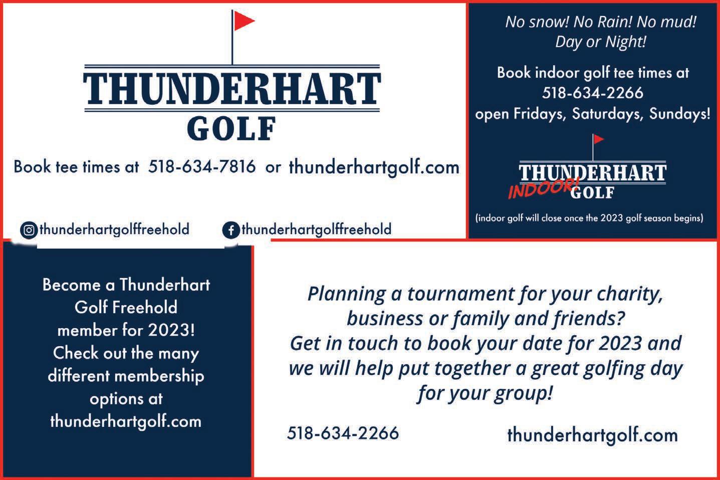 Book tee times at 518-634-7816 or thunderhartgolf.com