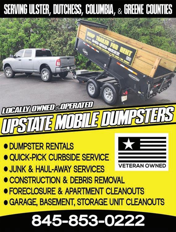 FURNACE & BOILER REPAIR 24 HR EMERGENCY SERVICE SERVICE CONTRACTS FURNACE & BOILER INSTALLATIONS GUARANTEED LOWEST PRICES HOME•FARM•OFF ROAD • 4x4 Delivery Trucks for Hard-to- Reach Driveways • Furnace & Boiler Installations & Repair • Budget Plans, Pre-Buys & Service Contracts • Automatic Delivery •24 Hour Emergency Services Ask About Our .10/gal. Customer ReferralProgram BringingAffordableFueltoOurNeighborsSince2011 45 5 4755 • 7 4 4 45 5 4755 • 7 4 4 FAMILY OWNED ORDER ON-LINE: brickyardpizzany.com We Deliver! 845-246-3001 Lunch Special 2 Slices Cheese Pizza & Can of Soda $6.00 Nominated for BEST PIZZA & WINGS in the HUDSON VALLEY! Now Serving Vegan MENU A FULL ORDER ON-LINE:brickyardpizzany.com We Deliver! Located in Simmons Plaza 3139 Route 9W • Saugerties OPEN: MONDAY –SATURDAY 11AM –9PM • SUNDAY 12 – 8PM 845-246-3001 MONDAY – Large Cheese Pizza.. $11 TUESDAY – Two Dozen Boneless Wings................................... $18 WEDNESDAY – Large Cheese Pizza, Large Garden Salad and Garlic Knots..................................... $21 THURSDAY – Two Large Cheese Pizzas................................... $20 FRIDAY – Two Large Cheese Pizzas and 2 Orders of Boneless Wings.................................. $44 SATURDAY – Any Two Subs....... $16 SUNDAY – Large One Topping Pizza................................... $15 Summer Savings! Firearms & Ammo Bought & Sold PLENTY OF AMMO IN STOCK NEW & USEDGUNS AGA SALES PEPPER GUNS, STUN GUNS, BEAR SPRAY & PERSONAL PEPPER SPRAY IN STOCK ALL NEW YORK STATE COMPLIANT Celebrating 50 years in business! 4508 Route 32 • Catskill, NY 12414 7/10 of a mile South of the light at 23A & 32 Email: agasalesjohn@gmail.com 518-678-5860 Don't Step On A Bee Day ••••• JULY 10 ••••• Bees are essential to our survival & play a big role in balancing our ecosystem. They are great pollinators, produce honey & give us food. This day marks the importance of these insects & the work that they do.