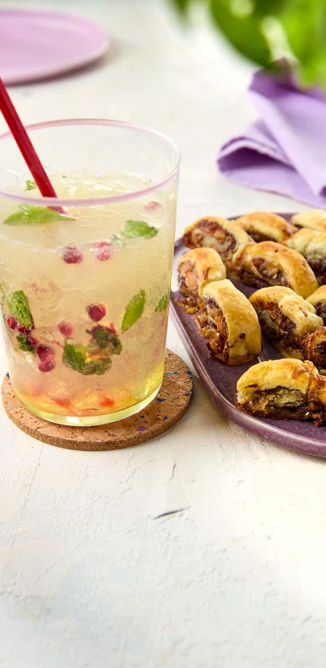 6 Vul verder aan met de limonade. Serveer samen met de tapenadestengels.